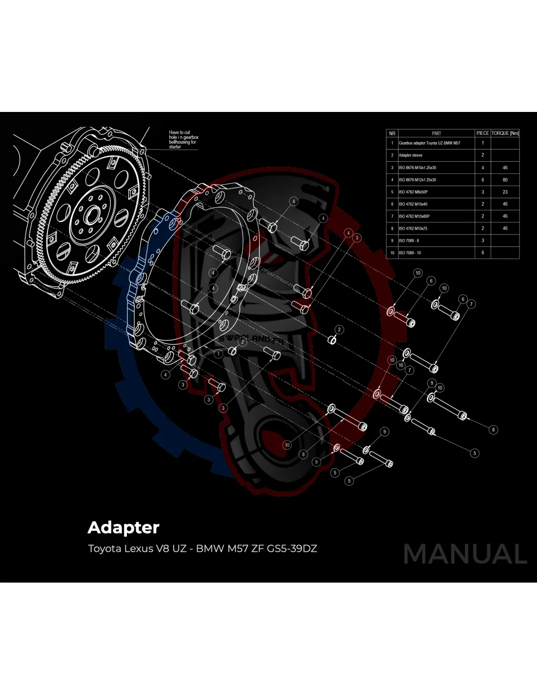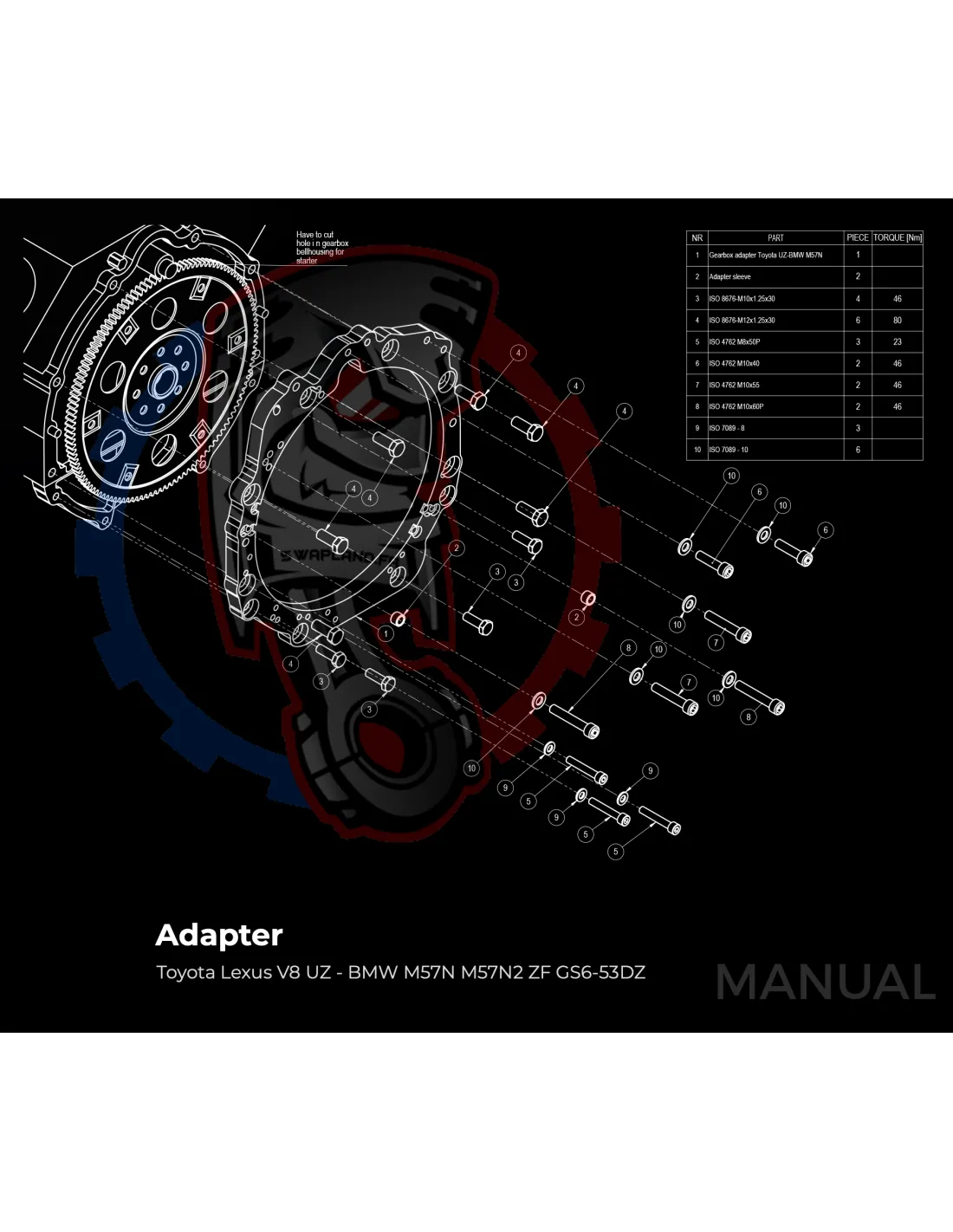 Kit conversion Race Stage 2 pour moteur Toyota Lexus V8 UZ 1UZ 3UZ avec boite BMW M57N M57N2 6-Vitesses HGD JGA HGA - 184mm