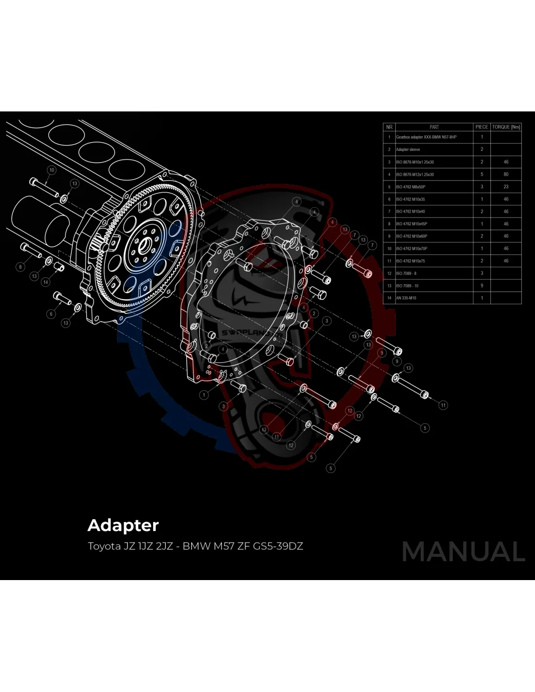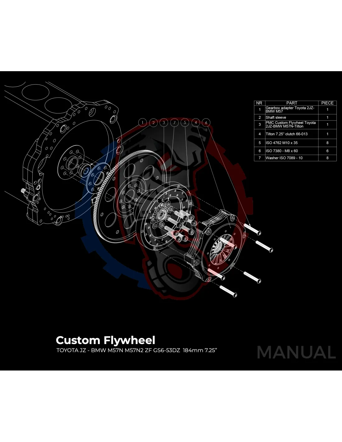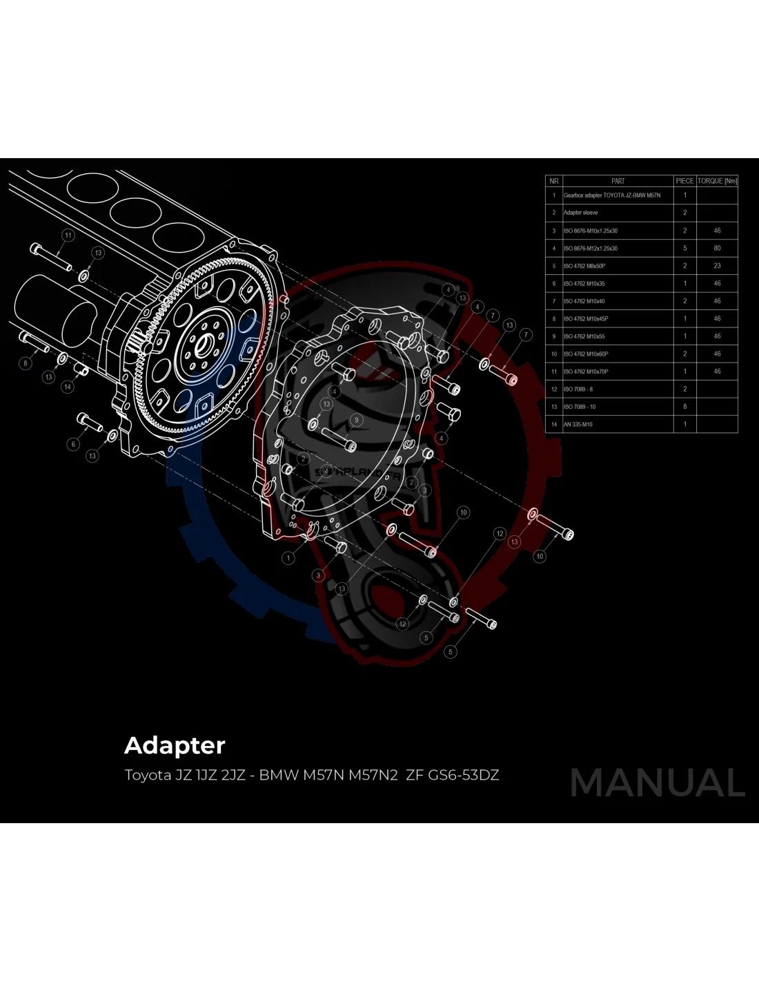 Kit Conversion Race Stage 3 Moteur Toyota JZ 1JZ 2JZ pour Boite BMW M57N M57N2 6-Vitesses HGD JGA HGA - 184mm