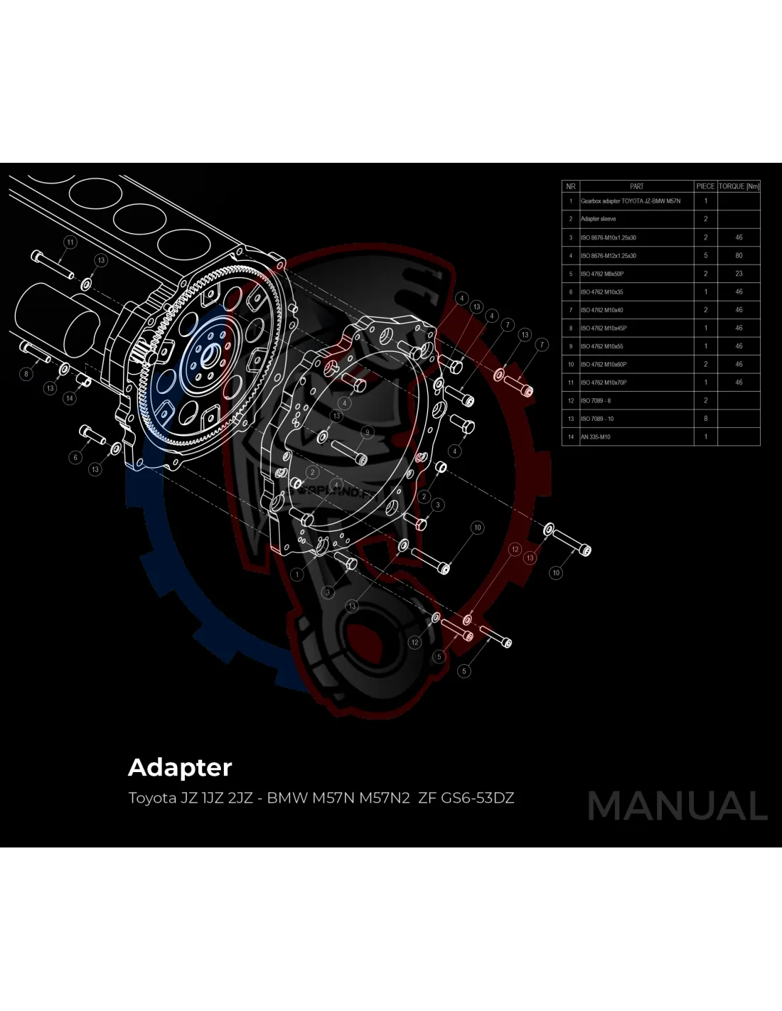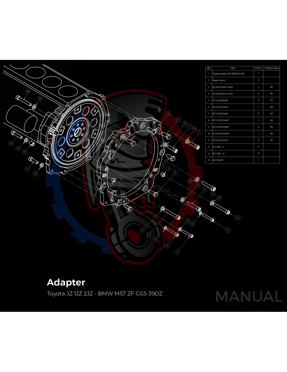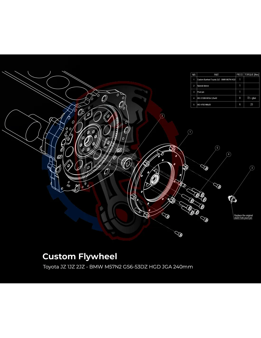 Kit Conversion Stage 1 Moteur Toyota JZ 1JZ 2JZ pour Boite De Vitesse BMW M57N M57N2 6-Rapports HGD JGA HGA - 240mm