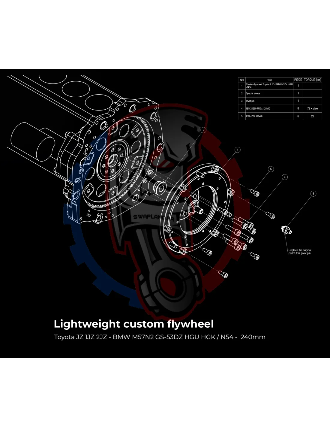 Kit Conversion Race Stage 1 pour Moteur Toyota JZ 1JZ 2JZ avec Boite de Vitesse BMW M57N2 6-Rapports HGU HGK / N54 - 240mm