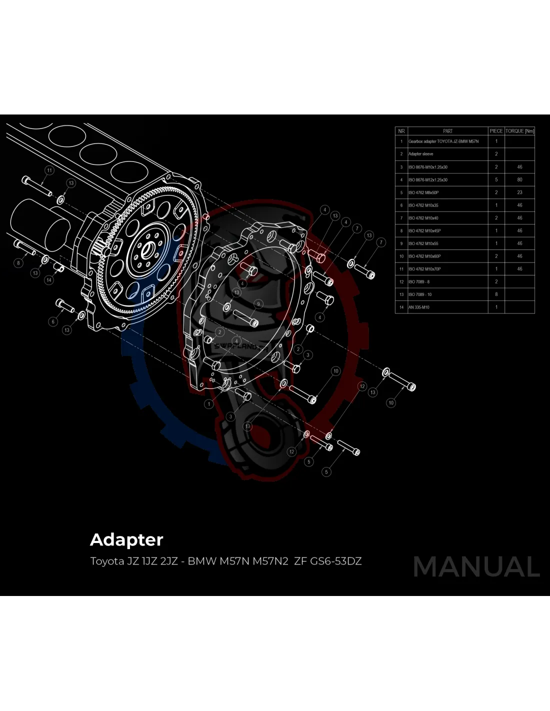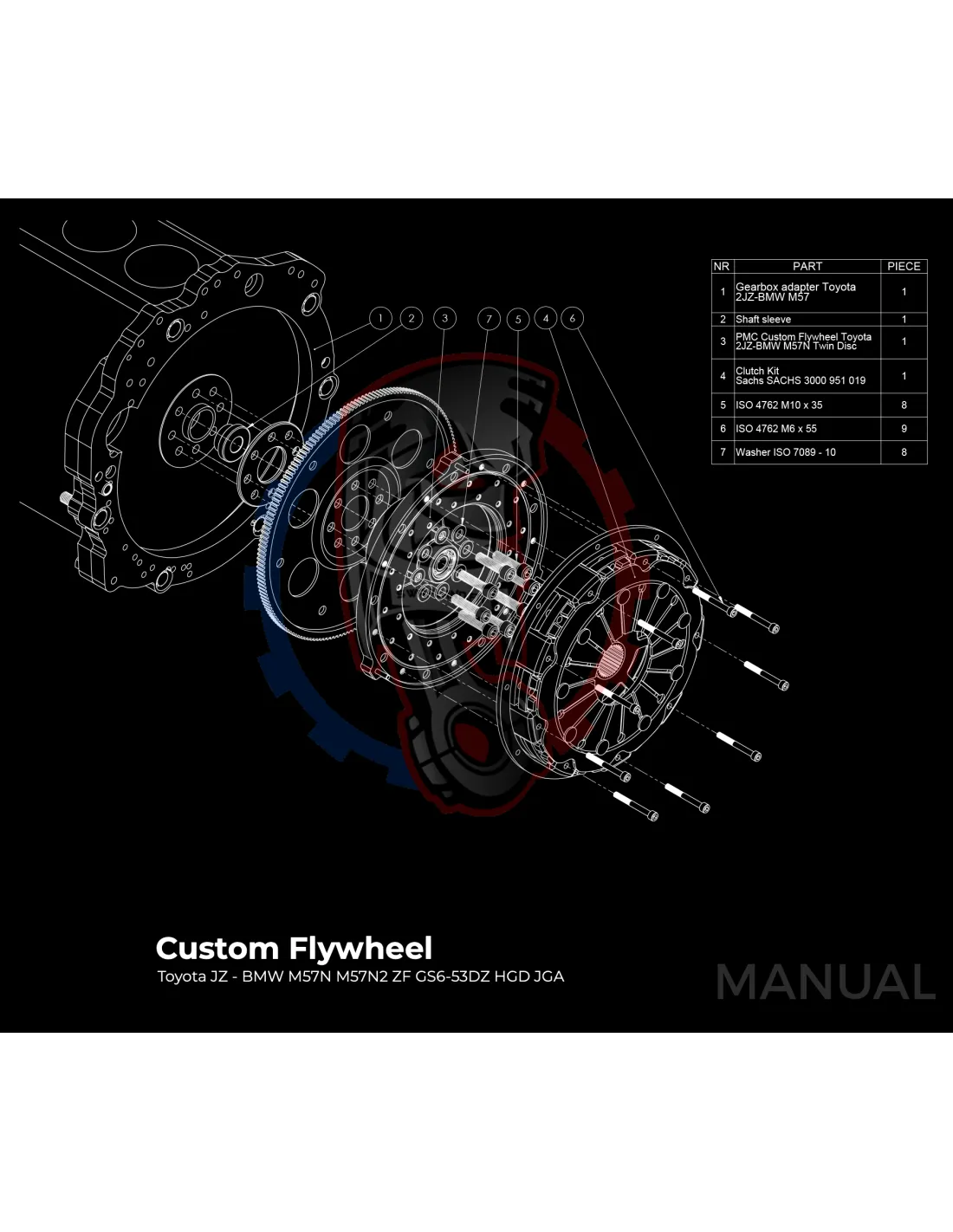 Kit Conversion Stage 2 Moteur Toyota JZ 1JZ 2JZ pour Boite de Vitesse BMW E90 M57N2 HGU HGK 6 Rapports - 228mm