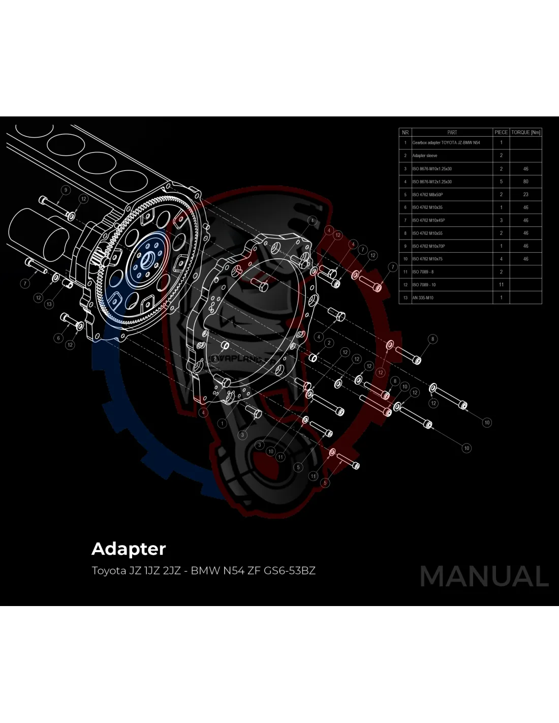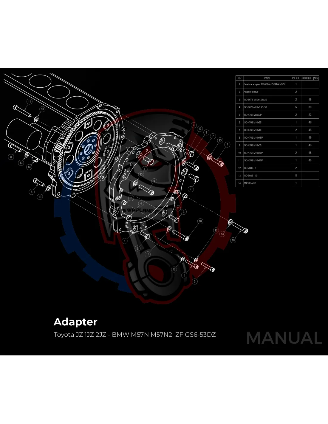 Kit Conversion Stage 1 Moteur Toyota JZ 1JZ 2JZ pour Boite De Vitesse BMW M57N2 6 Rapports HGU HGK / N54 - 240mm