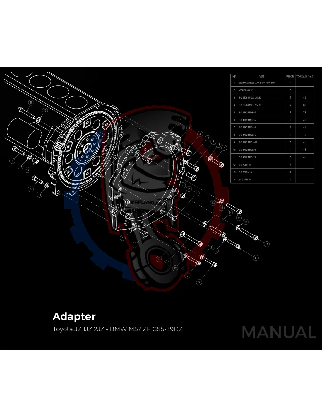 Kit Conversion Race Stage 3 Moteur Toyota JZ 1JZ 2JZ pour Boite Manuelle BMW M57 / E46 S54 M3 - 184mm