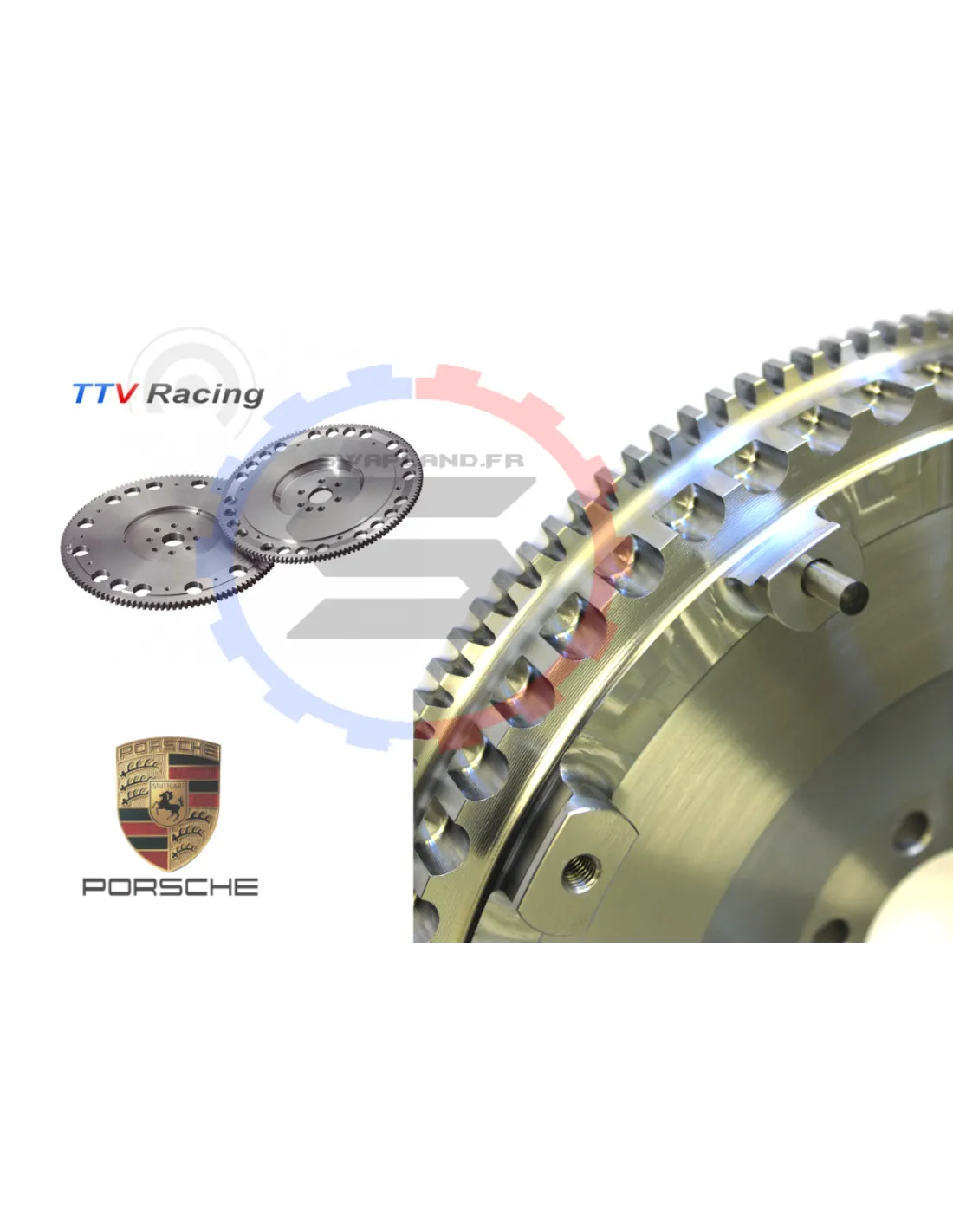 TTV Racing est le leader du marché dans le domaine des volants moteur "racing" pour Porsche. La marque développe une très large gamme de volants moteur allégés. Le faite de poser un volant moteur TTV Racing diminuera le temps de réponse de votre moteur de Porsche lors des montées en régime. Le poids des volant moteur TTV Racing est en général deux fois plus léger que le poids du volant moteur d'origine Porsche.