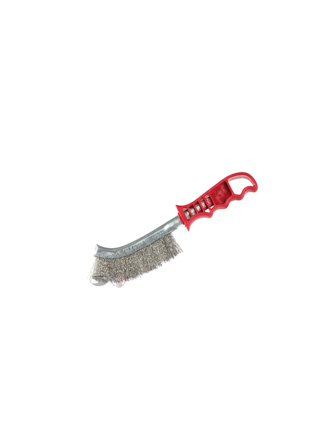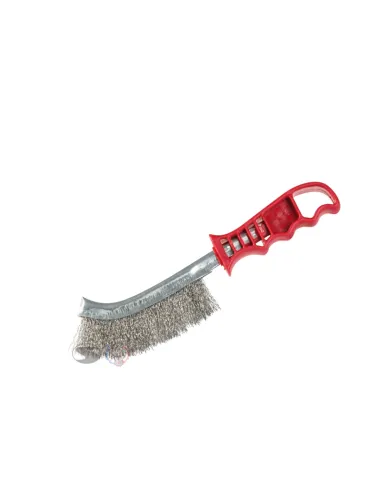 La brosse métallique profilée en acier inoxydable de KS Tools est dotée d'un manche en plastique robuste. Les fils sont en fil d'acier inoxydable serti. L'utilisation d'une brosse métallique en acier inoxydable empêche la pièce de se salir et de rouiller. Une surface en acier inoxydable ne doit jamais être traitée avec une brosse métallique en acier conventionnel ! La conception mince augmente le domaine d'application. De cette façon, les cordons de soudure peuvent être traités sans problèmes, même sur des connexions très étroites.