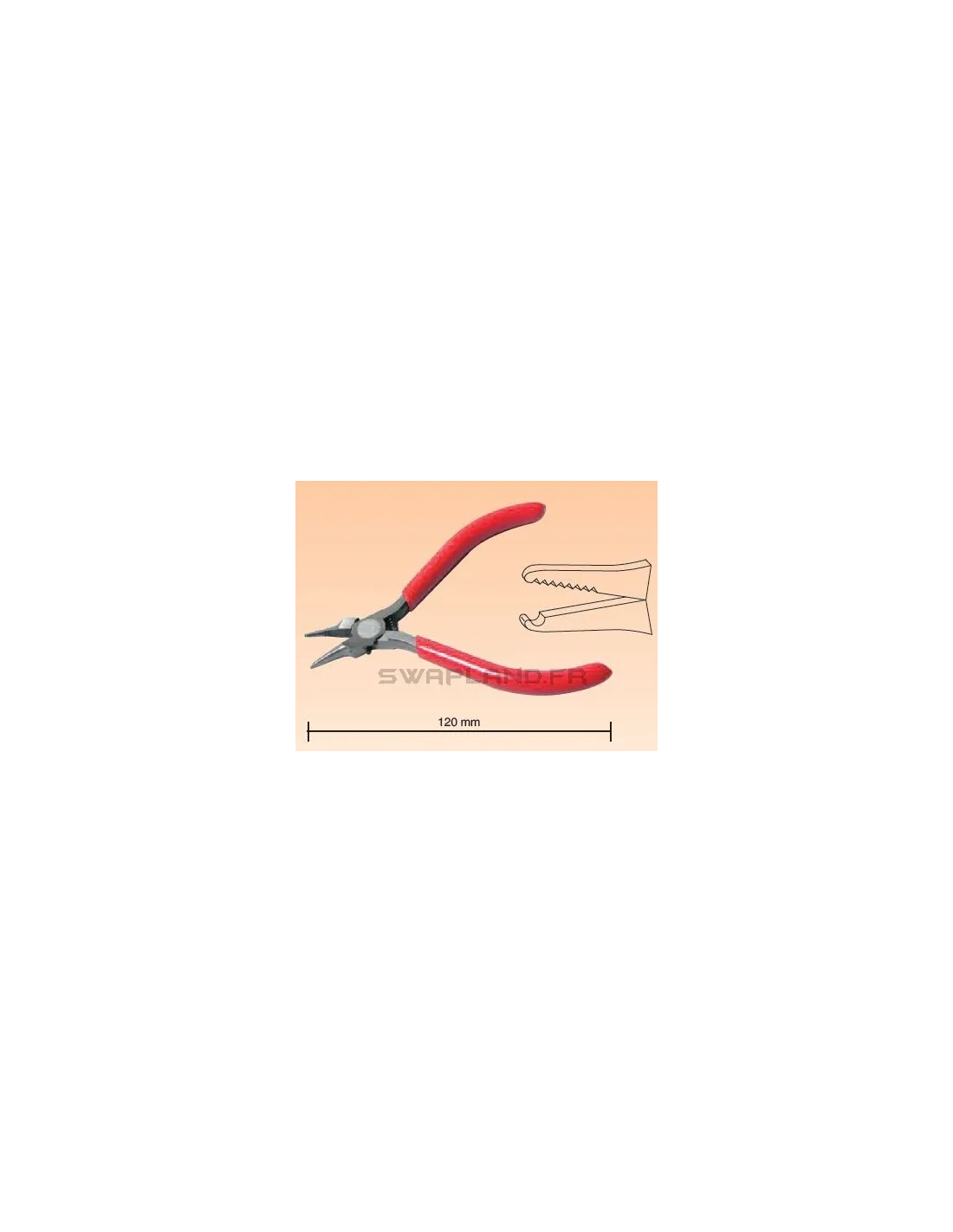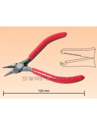Cette pince à becs extra fins et dentelés sert à retirer le clip d'axe de piston facilement et sans risque. Longueur de la pince 110 mm.