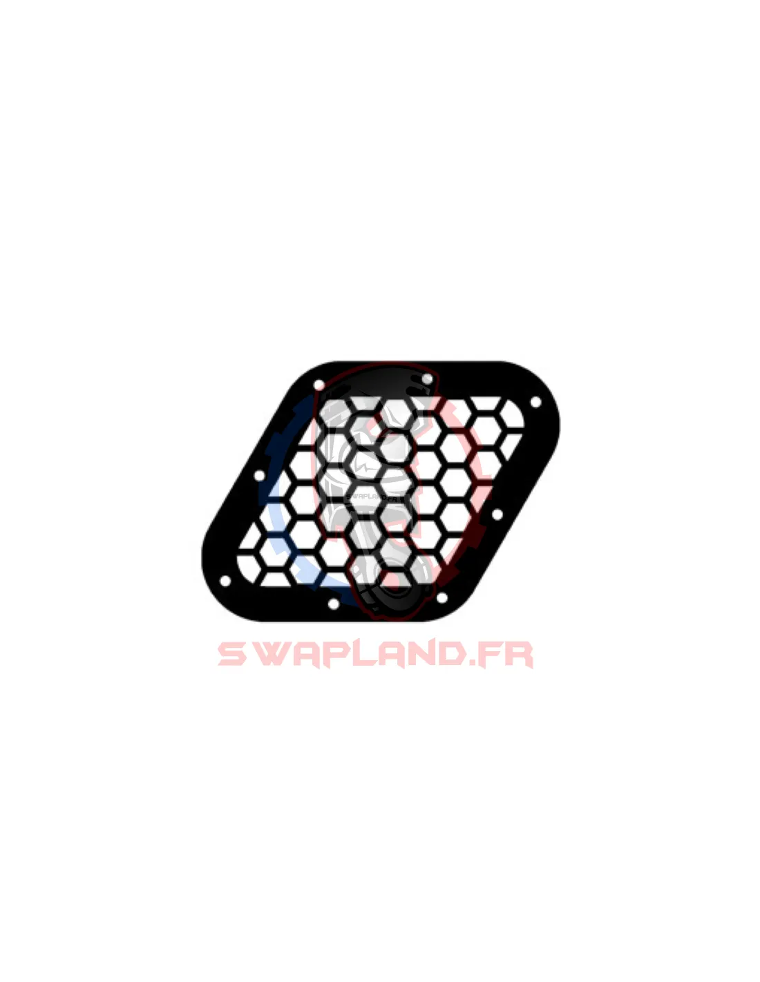 Conçu pour évacuer l'air chaud de votre compartiment moteur cette prise d'air mesure 90 X 90 mm. Les motifs sont découpés au laser et anodisé par la suite. Fabriqué en aluminium de 1 mm cette prise d'air bénéficie de trous de fixation de 4 mm.