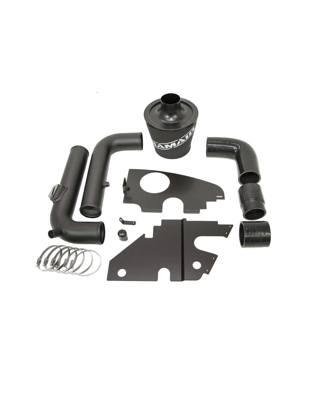 - Tuyau d'admission en silicone noir et en aluminium.