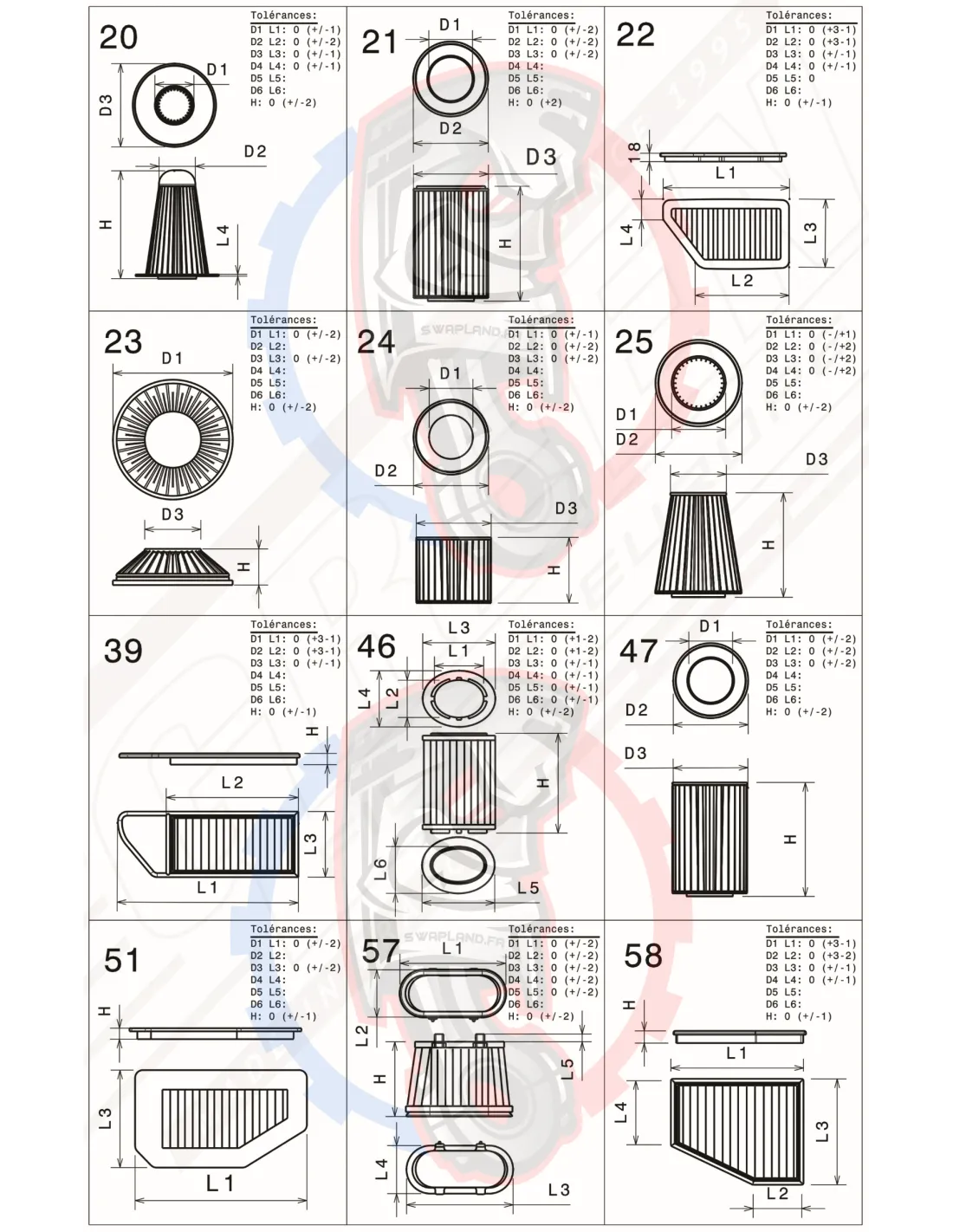 | Modéle | Type | CV | Code moteur | Année | Forme | D1 | D2 | D3 | D4 | Hauteur | Figure | Référence |