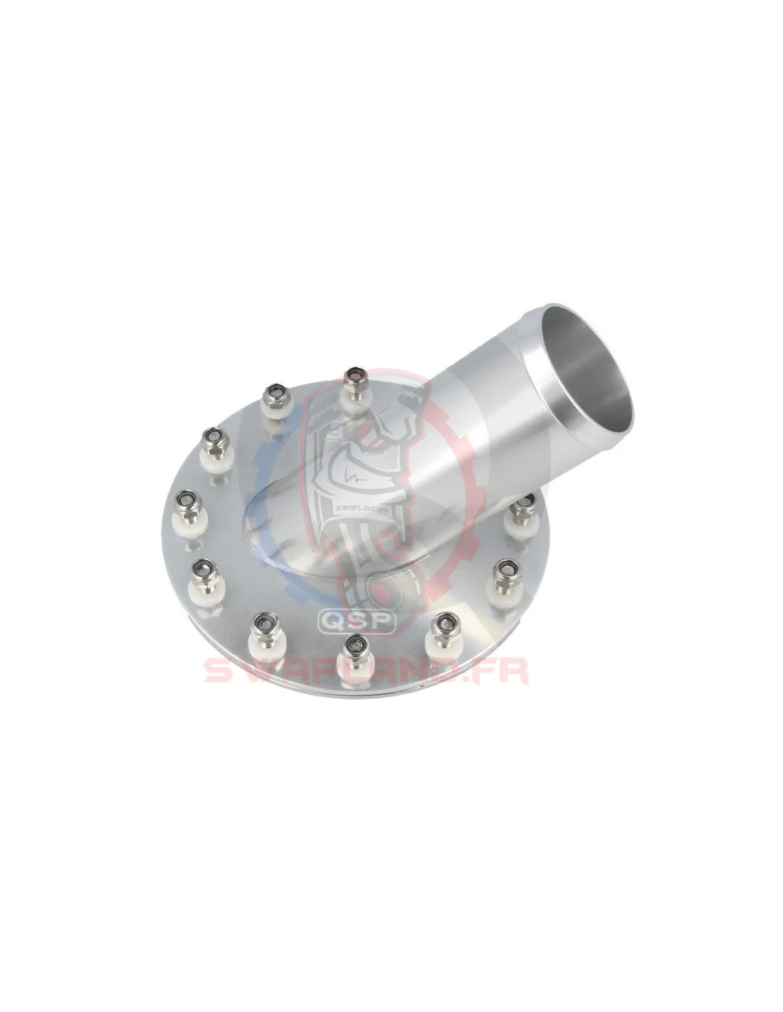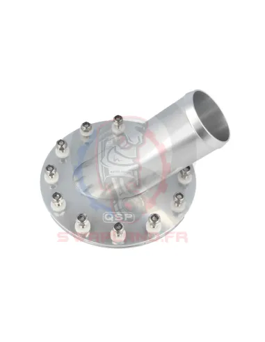 Le bouchon de réservoir en alliage d'aluminium gris est pourvu d'un angle à 45°. Le diamètre extérieur du tuyau de raccordement est de 51 mm. Compatible avec les réservoirs QSP ci dessous.