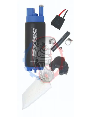 Le kit comprend une pompe à essence SYTEC ainsi que tout le nécessaire pour l'adapter à votre véhicule (connecteurs, filtres, etc).