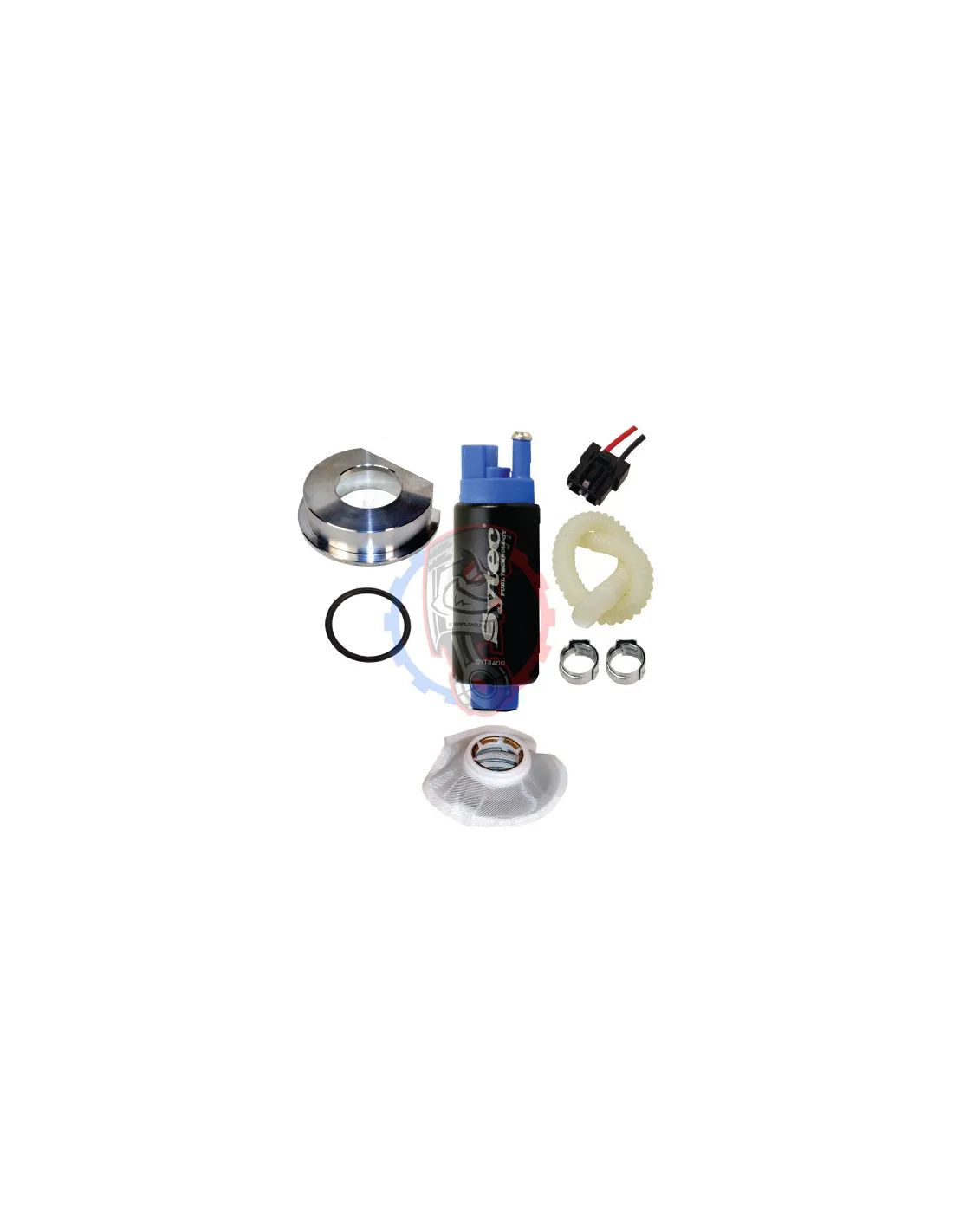 Le kit comprend une pompe à essence SYTEC ainsi que tout le nécessaire pour l'adapter à votre véhicule (connecteurs, filtres, etc).