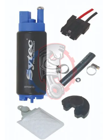 Le kit comprend une pompe à essence SYTEC ainsi que tout le nécessaire pour l'adapter à votre véhicule (connecteurs, filtres, etc).