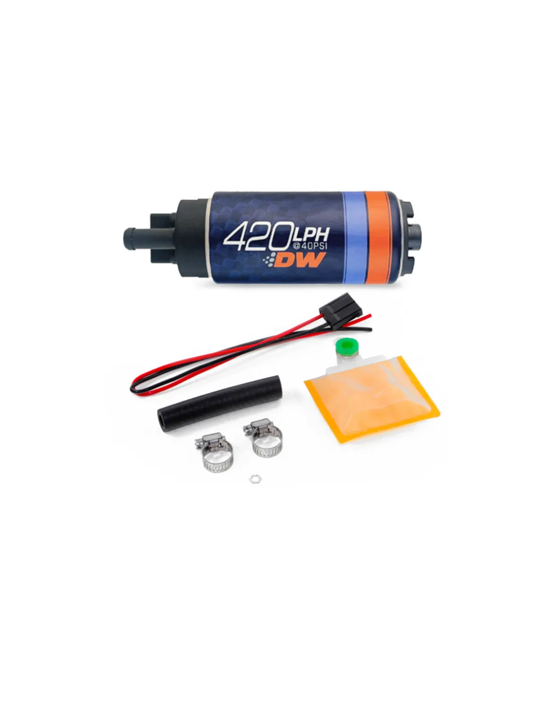 La pompe à carburant DW420 délivre un débit de 420 LPH, tout en conservant le même format compact de 39 mm de diamètre que les modèles DW200 et DW300. Elle est dotée d’un nombre optimal de pales et d’un angle d’impulsion étudié pour maximiser l’efficacité à son débit cible. Une valve anti-retour intégrée maintient la pression dans le circuit de carburant, évitant ainsi les démarrages difficiles. Véritable concurrente de sa grande sœur la DW400, la DW420 se distingue par sa compatibilité élargie grâce à son format plus polyvalent.