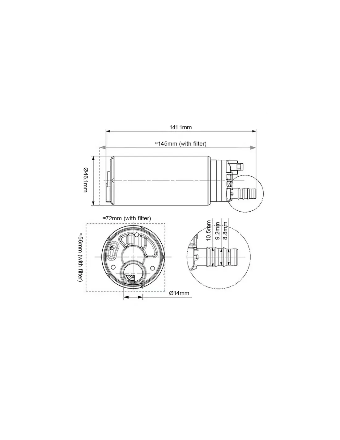 | Diamètre de la pompe à carburant | 46 mm (1.81") |
