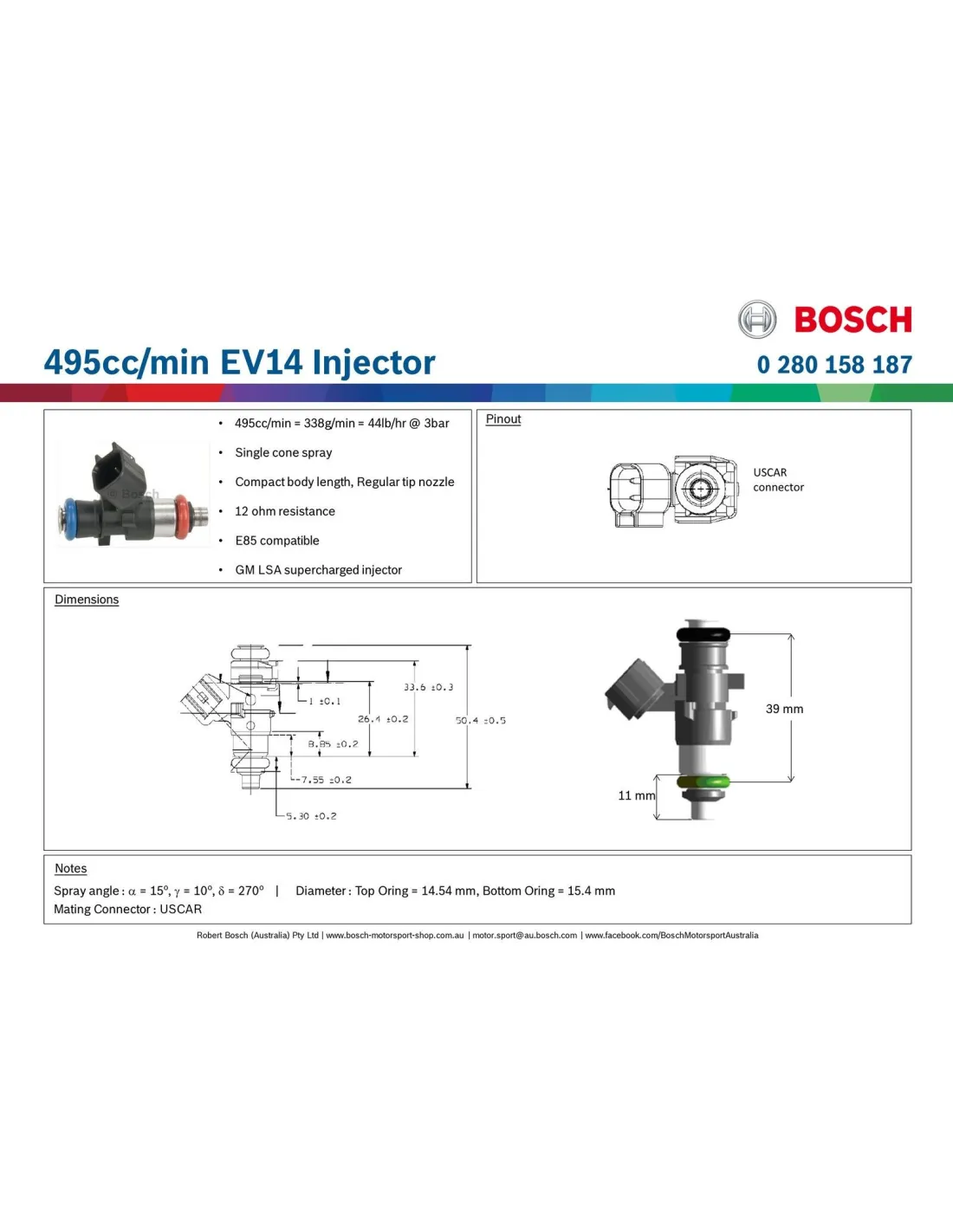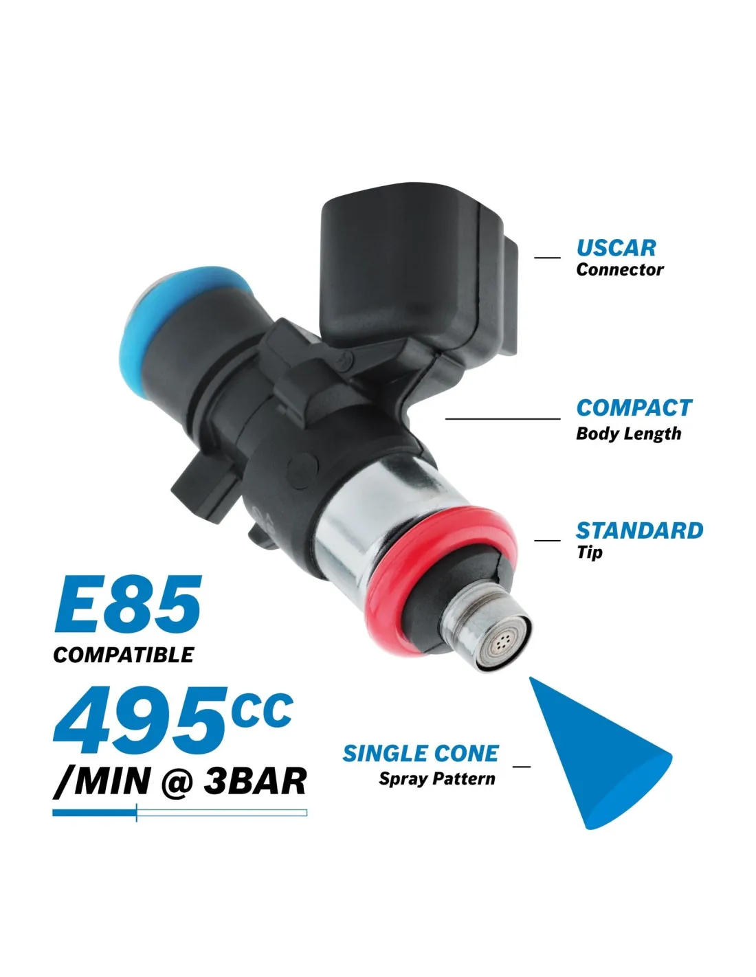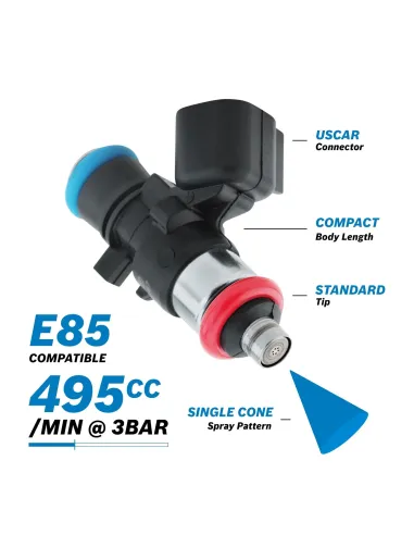 Débit 495 cc sous 3 bars de pression d'essence.