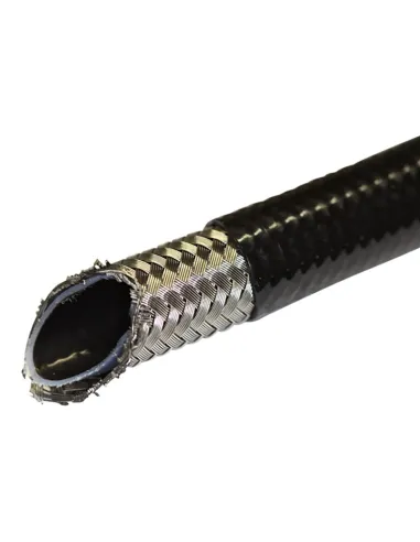 - Renforcement : Tressage inox + gainage PVC noir