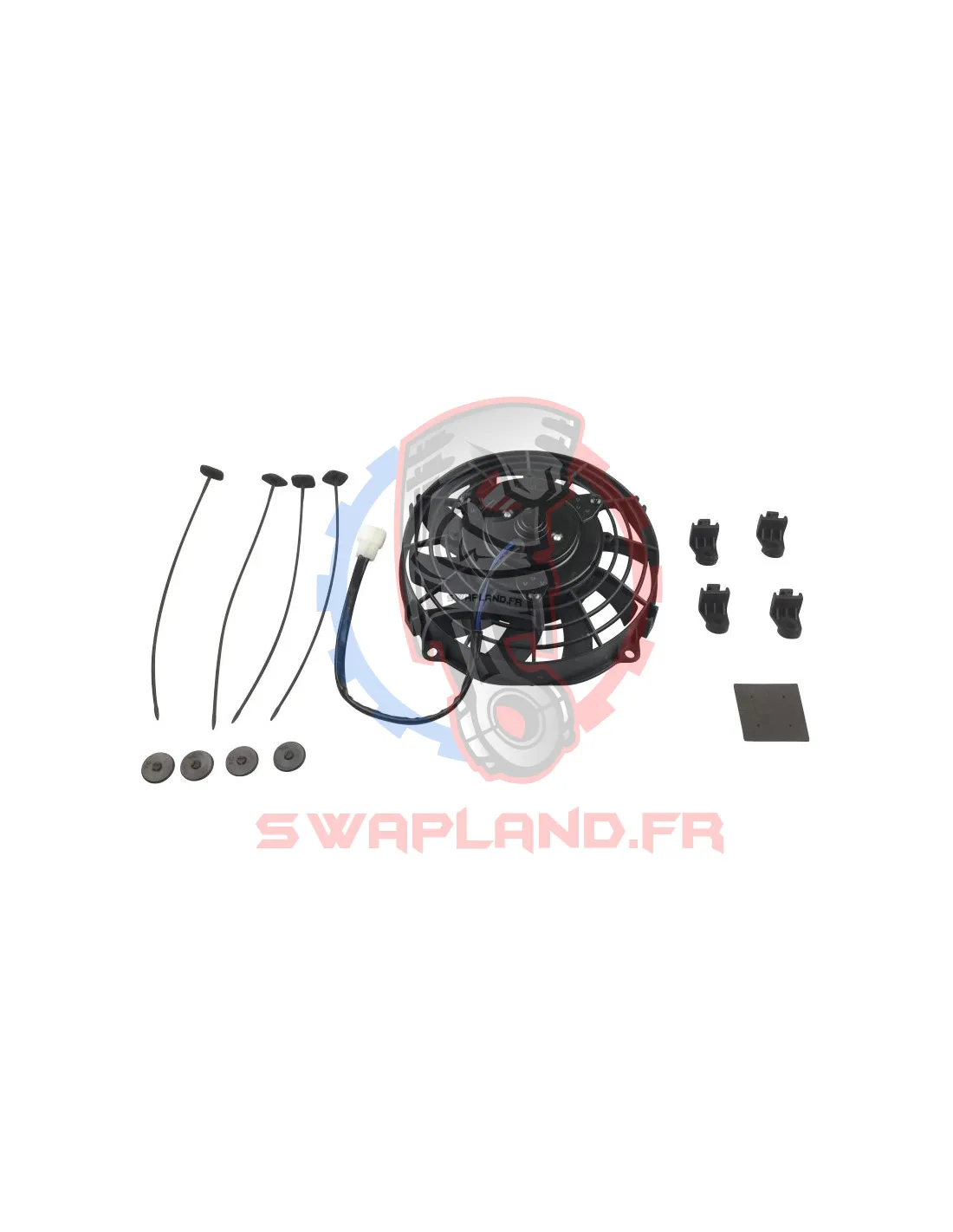 Ce ventilateur plat de diamètre 382 mm est réversible pour l'aspiration il faut brancher le fil bleu sur le + et le noir sur le - . Pour le faire fonctionner en soufflant il vous suffira de brancher le fil bleu sur le - et le noir sur le +.