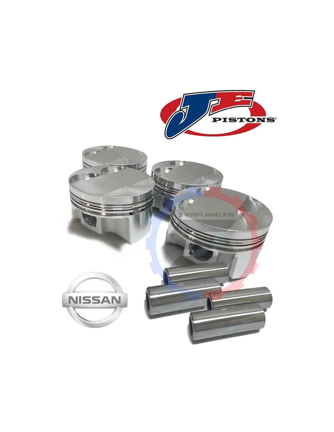 Le kit piston JE pour Nissan comprend les pistons, les segments, les circlips et les axes.