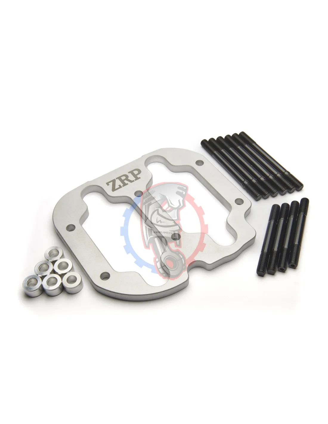 La plaque est conçue en aluminium 7075-T6 de qualité aéronautique, offrant une résistance exceptionnelle. Elle ne nécessite ni chaîne, ni pignon, ni pompe supplémentaire. La plaque de renfort du vilebrequin se fixe directement sur les 6 chapeaux principaux centraux, sans aucune modification requise. Le kit comprend des entretoises et des goujons ARP 2000 pour tous les chapeaux principaux.