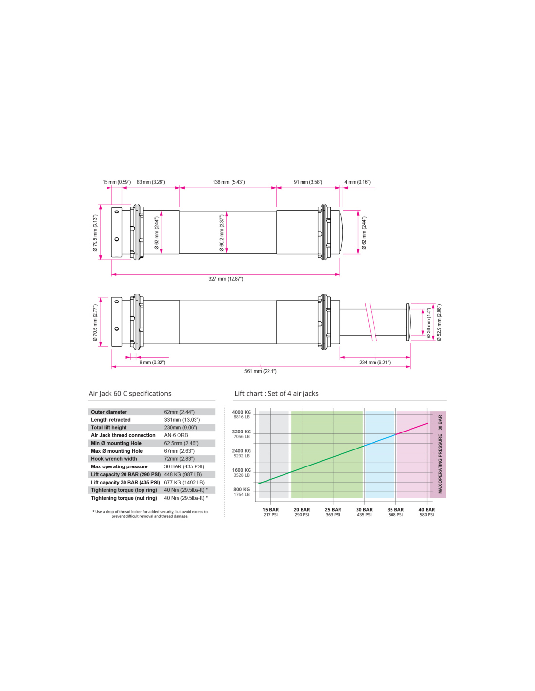 - L'ensemble de 4 pièces soulève 1 792 kg (3 950 lb) à une pression aussi basse que 20 bars (290 psi)