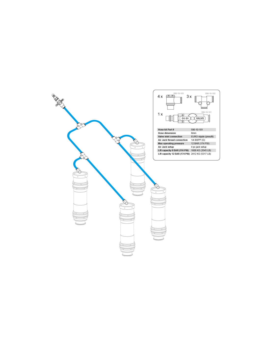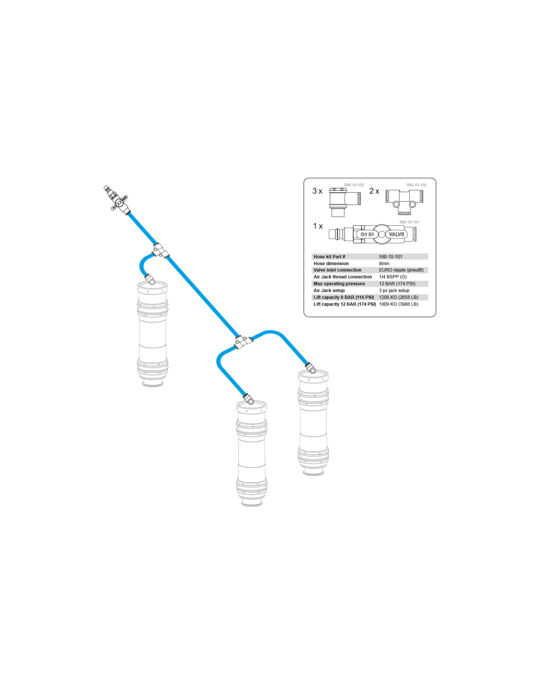 Ensemble complet Air Jack 90 Competition 2 pièces, 8 BAR / 120 PSI