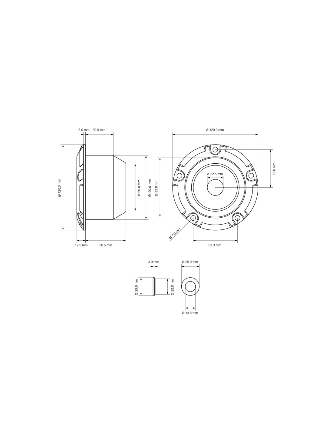 Diamètre de montage 22,5 mm (0,88") / 14,5 mm (0,57")
